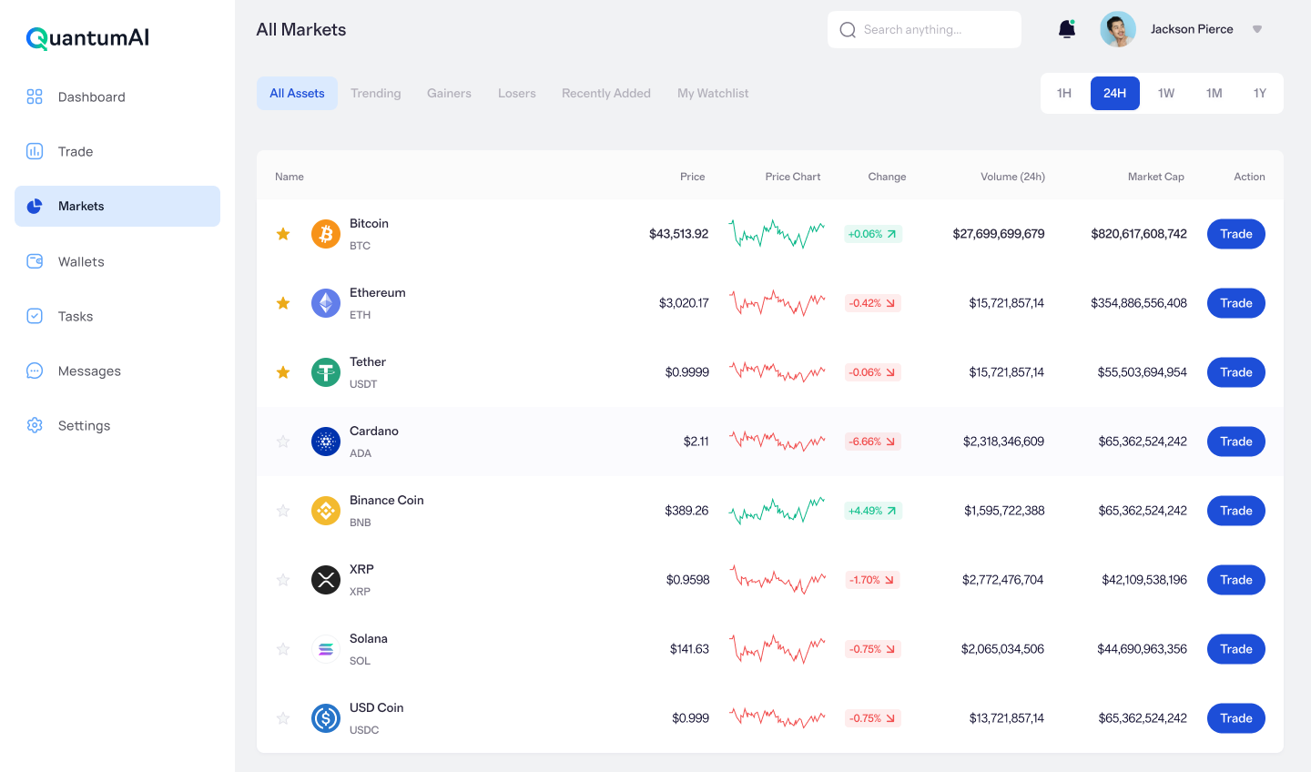 Quantum AI vous donne accès aux marchés financiers les plus dynamiques du monde — le tout sur une plateforme intelligente. Que vous investissiez dans les cryptomonnaies, que vous tradiez les principales paires de forex ou que vous profitiez des mouvements du marché boursier, nos outils alimentés par l’IA sont conçus pour vous aider à trader plus intelligemment, plus rapidement et avec davantage de confiance.